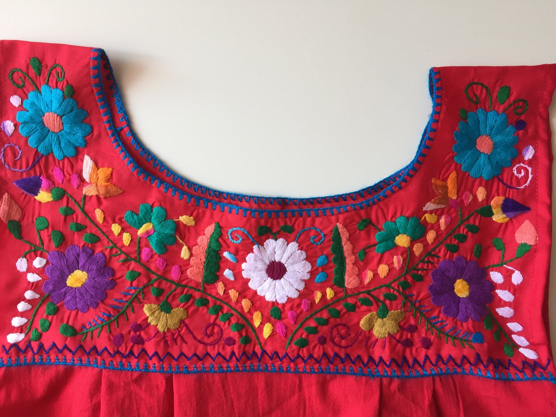 🌼Folkloric Loose and airy dress with very comfortable fit, this cotton dress was hand embroidered in the community of San Gabriel Chilac, in the state of Puebla, Mexico.🌵 Only the elaboration of a dress like this can take up to 16 hours to make.